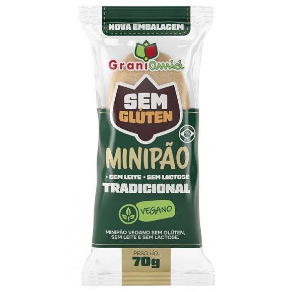 CATEGORIA ALIMENTAR>ORGÂNICO>Minipão Vegano, Zero Glúten e Zero Lactose - GRANI AMICI - 70g